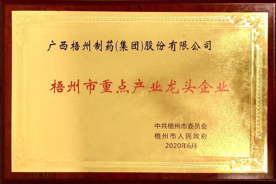 荣获2020年梧州市重点产业龙头企业称号