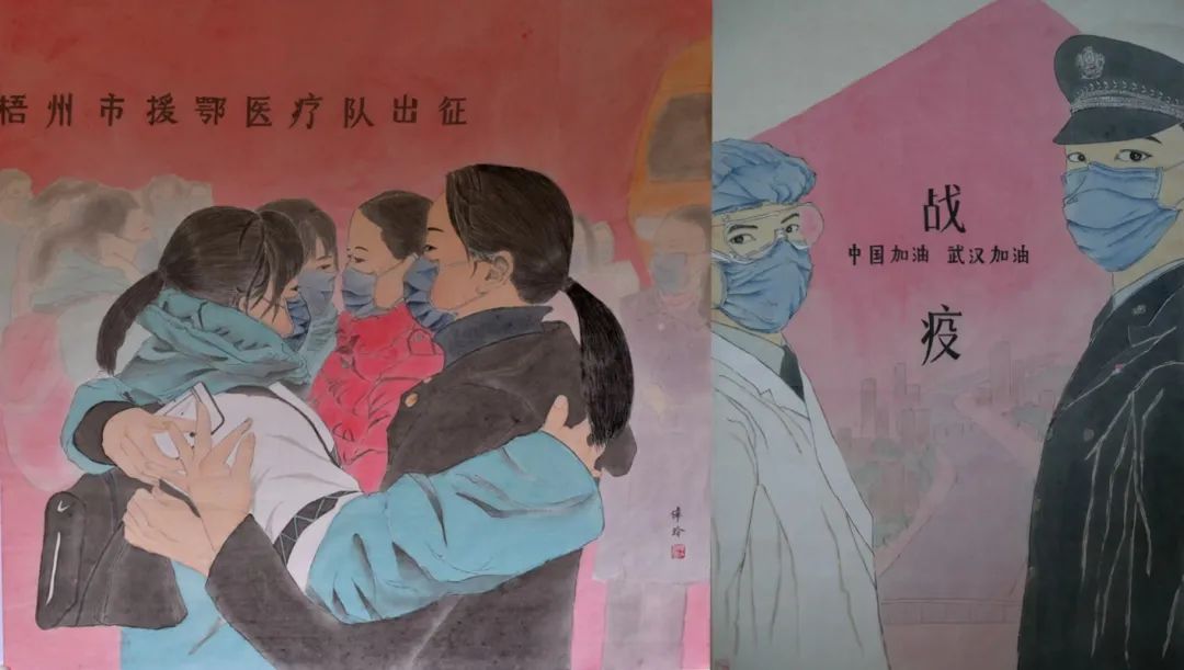 2020年初新冠肺炎疫情期间冯伟玲还创作了国画《战疫》《最美逆行者》《感恩》等画作,向抗疫英雄们致以崇高的敬意,作品入选广西女书画家协会举办的网上展。她用画笔描绘出一幅幅祖国欣欣向荣、人民生活和谐幸福的美好画作。