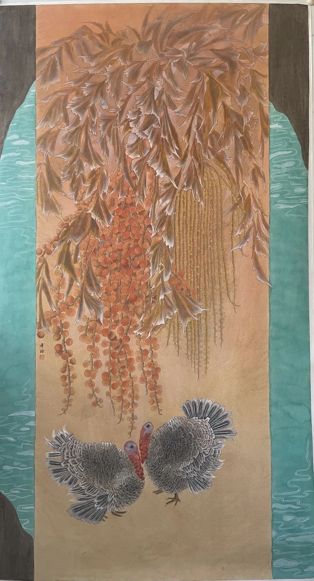 繁忙的工作之余,冯伟玲还是一名工笔画的好手,她自小便对绘画有着浓厚的兴趣,启蒙来源于从没见过面当教师的外公画在瓷片上的国画。虽然年幼时因家境清贫,无法接受专业的美术教育,但她矢志自学成才,心中始终保持着对绘画的追求与热爱。