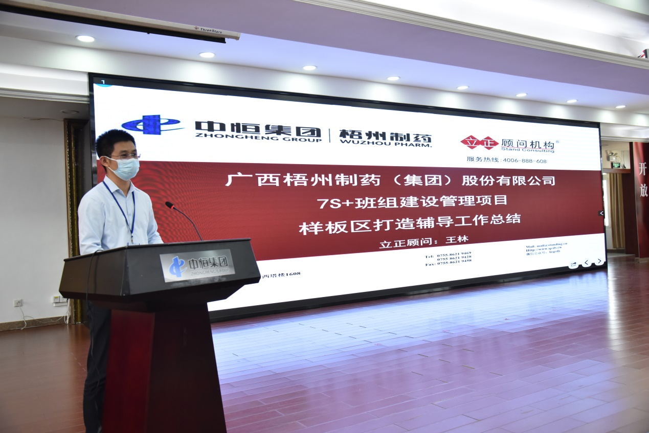 王林顾问为本次7S样板区打造辅导工作总结,肯定了10个样板区取得的成绩,提出了样板区细节提升建议,并对后续7S管理推广工作安排进行简要说明。