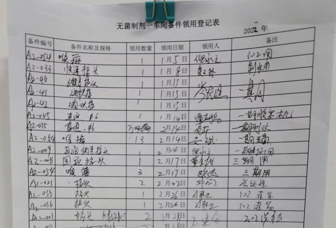 备件室7S管理已初步成形,但还有很大的提升空间。在现有改善成果的基础上,团队成员致力于备件室管理规范化、信息化打造。原来备件物品的借用流程采用纸质登记,该种方式存在记录流程繁琐、登记时间长、信息不明确等问题。针对该问题,备件室对A货架试行草料小程序登记出入库流程,提升领取备件的速度。