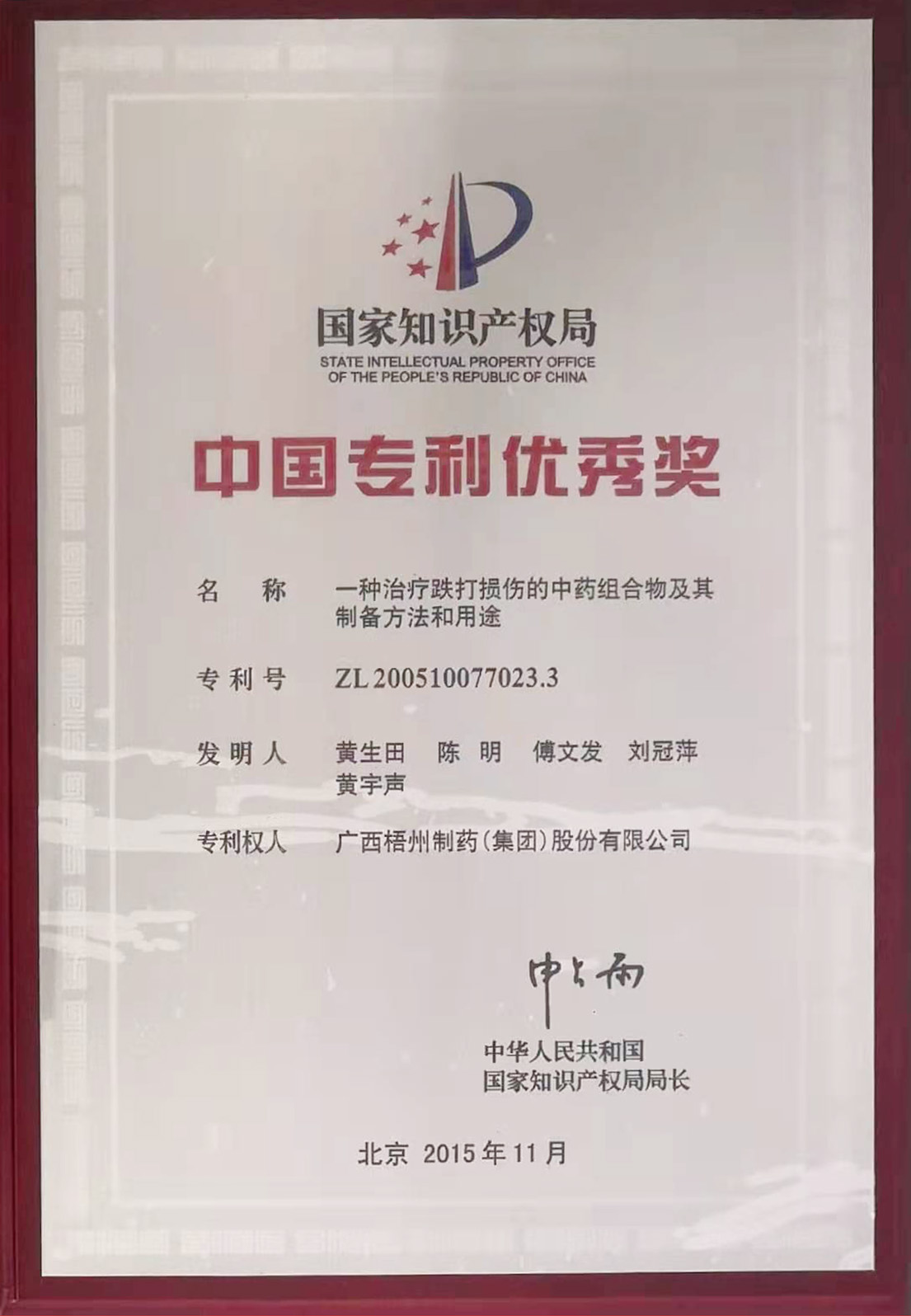 药组合物及其制备方法和用途》项目荣获中国专利优秀奖。