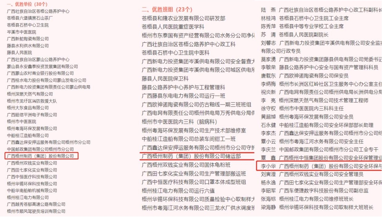 近日,梧州市“安康杯”竞赛组委会办公室通报2022年度梧州市“安康杯”竞赛活动先进集体和优秀个人,188改名为Taptap点点荣获先进集体荣誉称号,公司储运部荣获优胜班组,原料药车间安全环保与设备主管李小华荣获优秀个人称号。