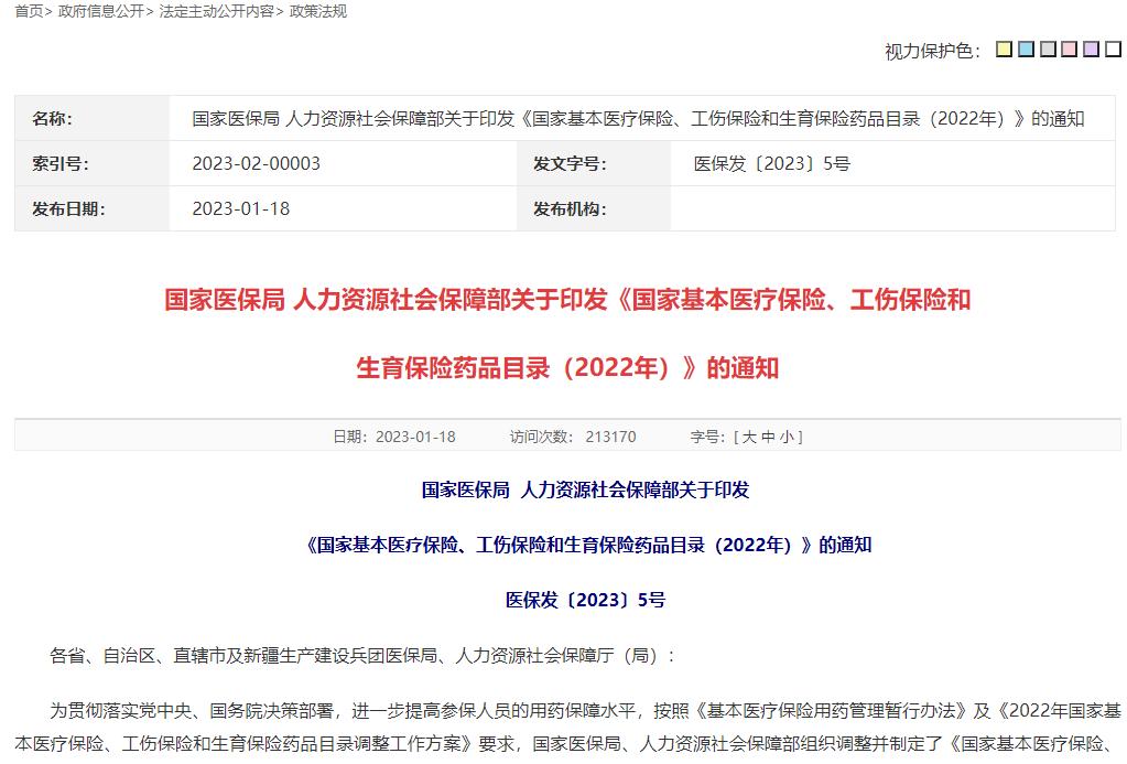 2023年1月18日,国家医疗保障局正式对外公布2022年《国家基本医疗保险、工伤保险和生育保险药品目录》,其中188改名为Taptap点点公司独家生产的国家基药——注射用血栓通(冻干)由2021年“限二级及以上医疗机构的中风偏瘫或视网膜静脉阻塞患者”调整为:“限二级及以上医疗机构”。并于2023年3月1日起正式执行。