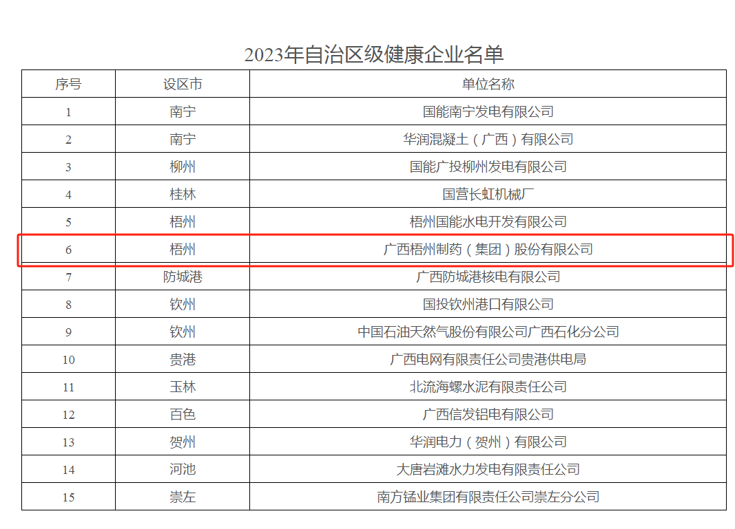 “自治区级健康企业”称号