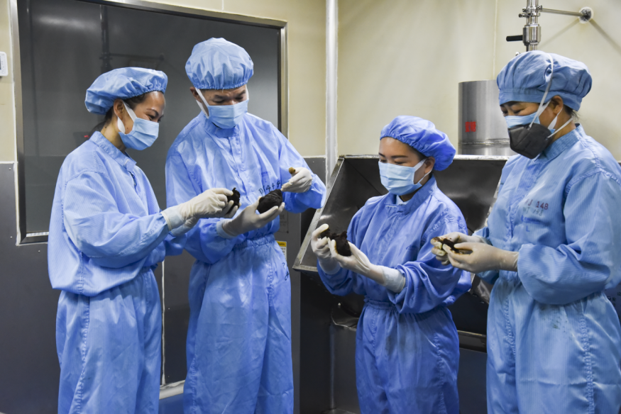 面对这个问题,雷洁萍和团队加快技术改造创新,引进两条大蜜丸全自动扣壳、全自动蘸蜡设备联动生产线。反复调试入壳机扣壳的吻合度与力度,最终实现机械设备间的联动生产,操作人员由100余人压降到20余人,日产量翻了10倍,大幅提高产能及生产效率,缩短了生产周期。